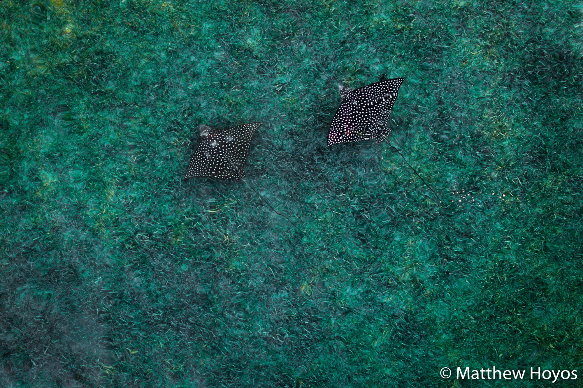 A Spotted Eagle Ray couple swimming in Biscayne Bay.